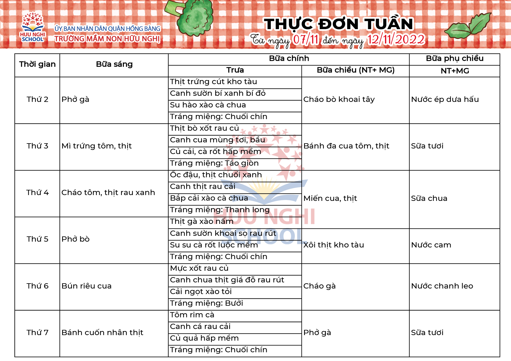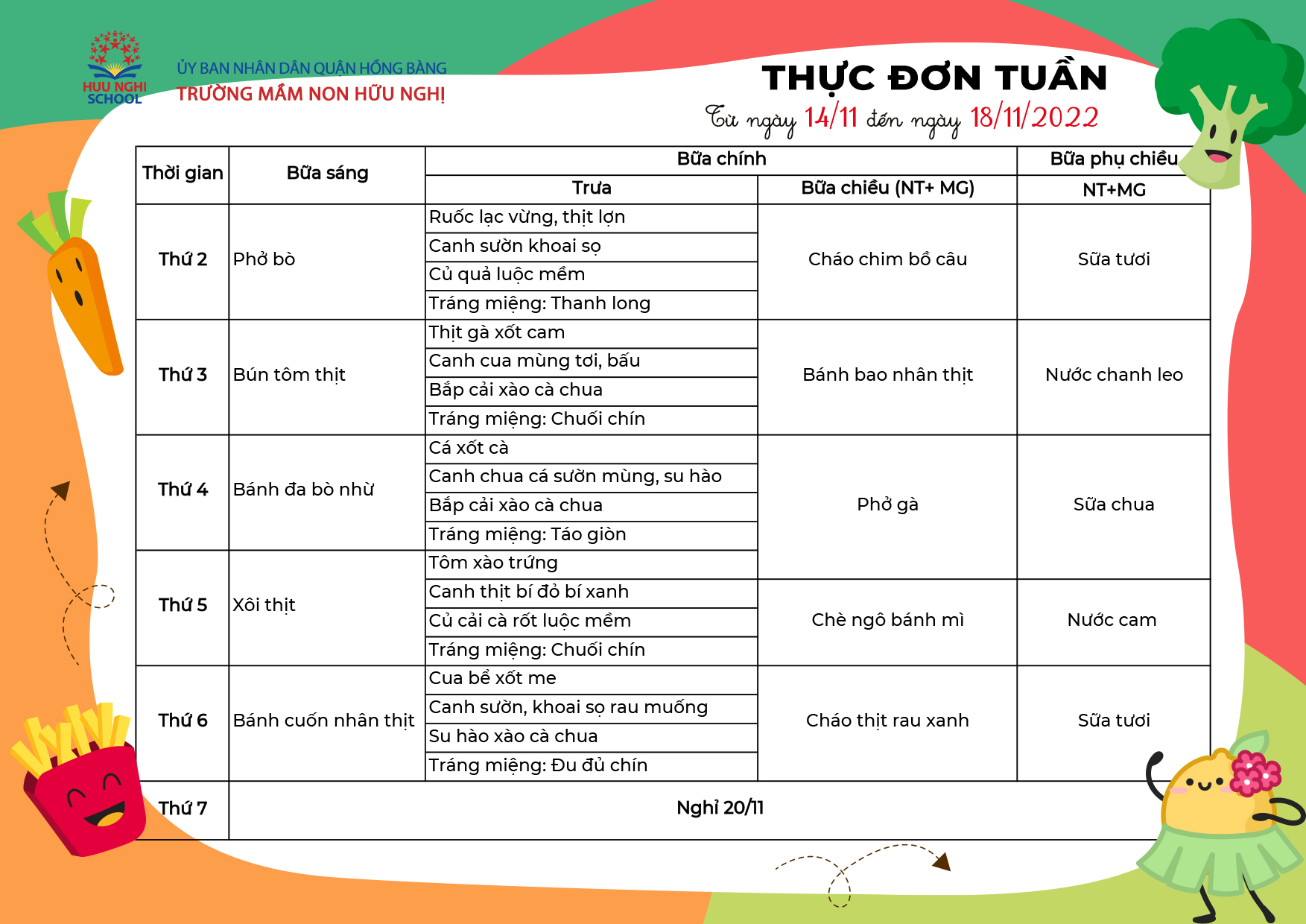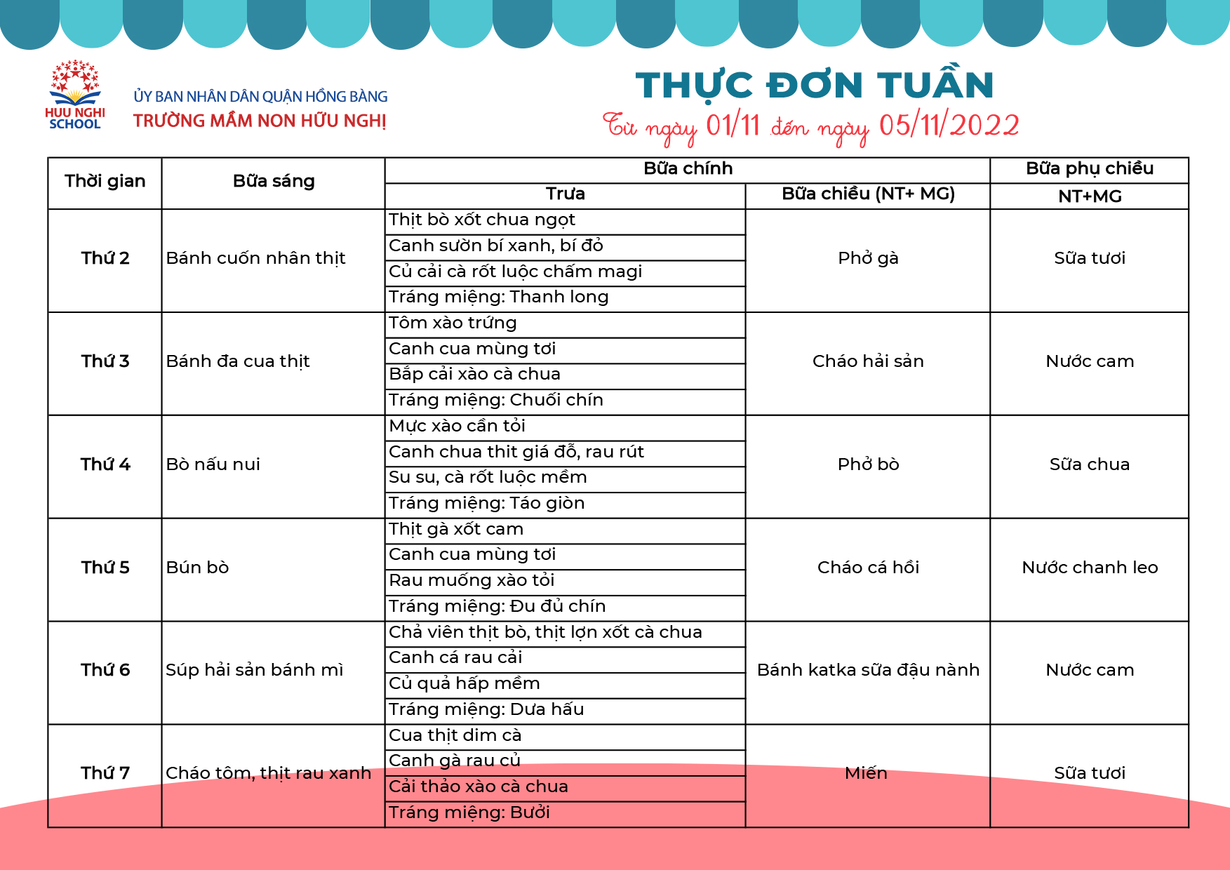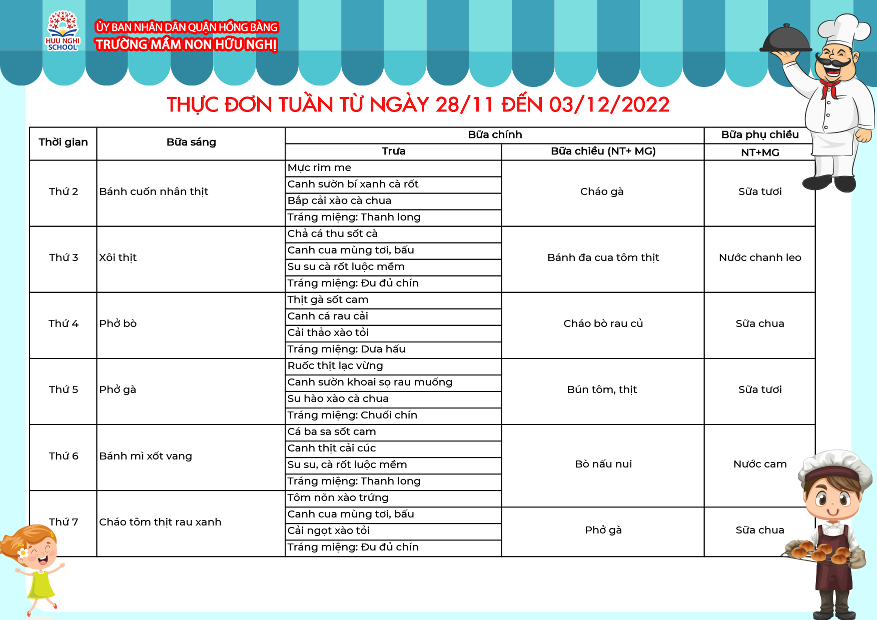 Thực đơn tháng 11 năm 2022