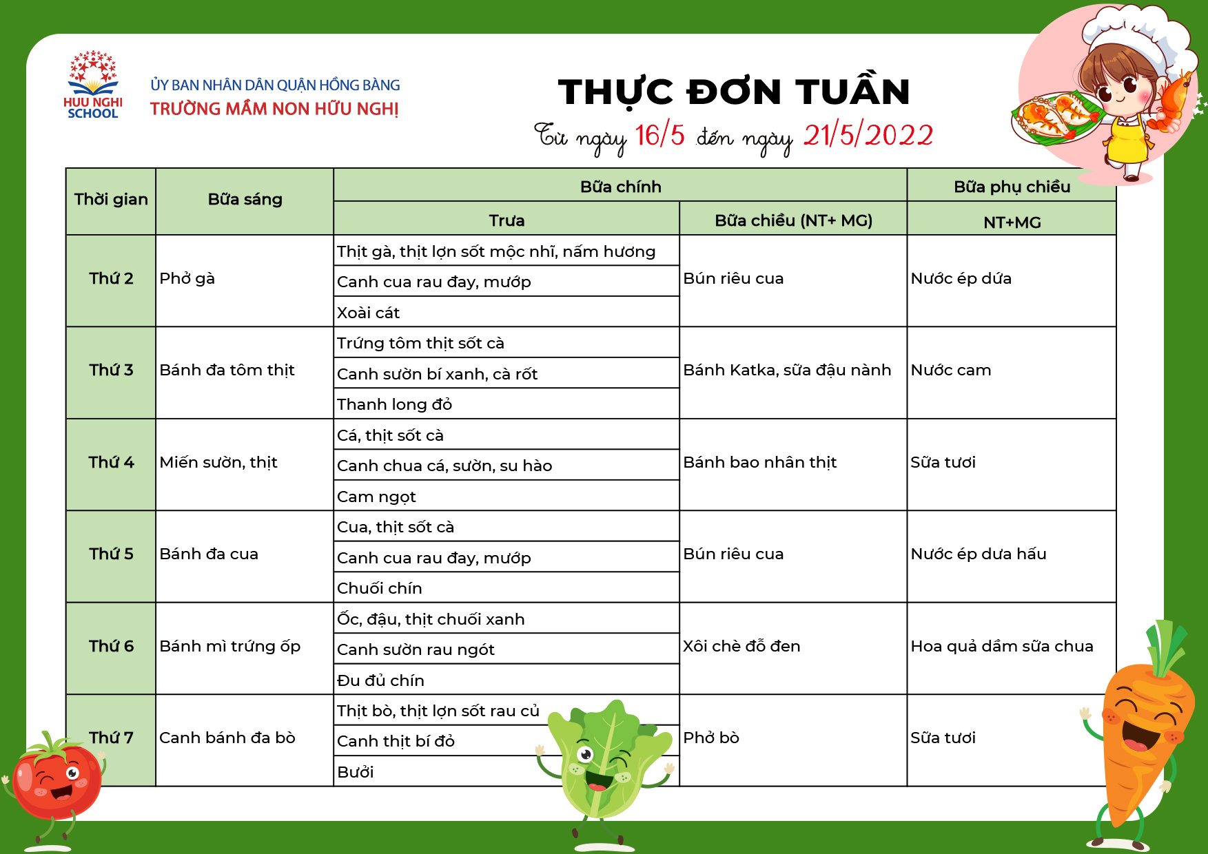 Thực đơn của toàn Hệ thống trường Hữu Nghị Quốc tế được các Chuyên gia Dinh dưỡng học đường chịu trách nhiệm chuyên trách đảm bảo chế độ dinh dưỡng đầy đủ năng lượng và vi chất cho học sinh theo từng độ tuổi.