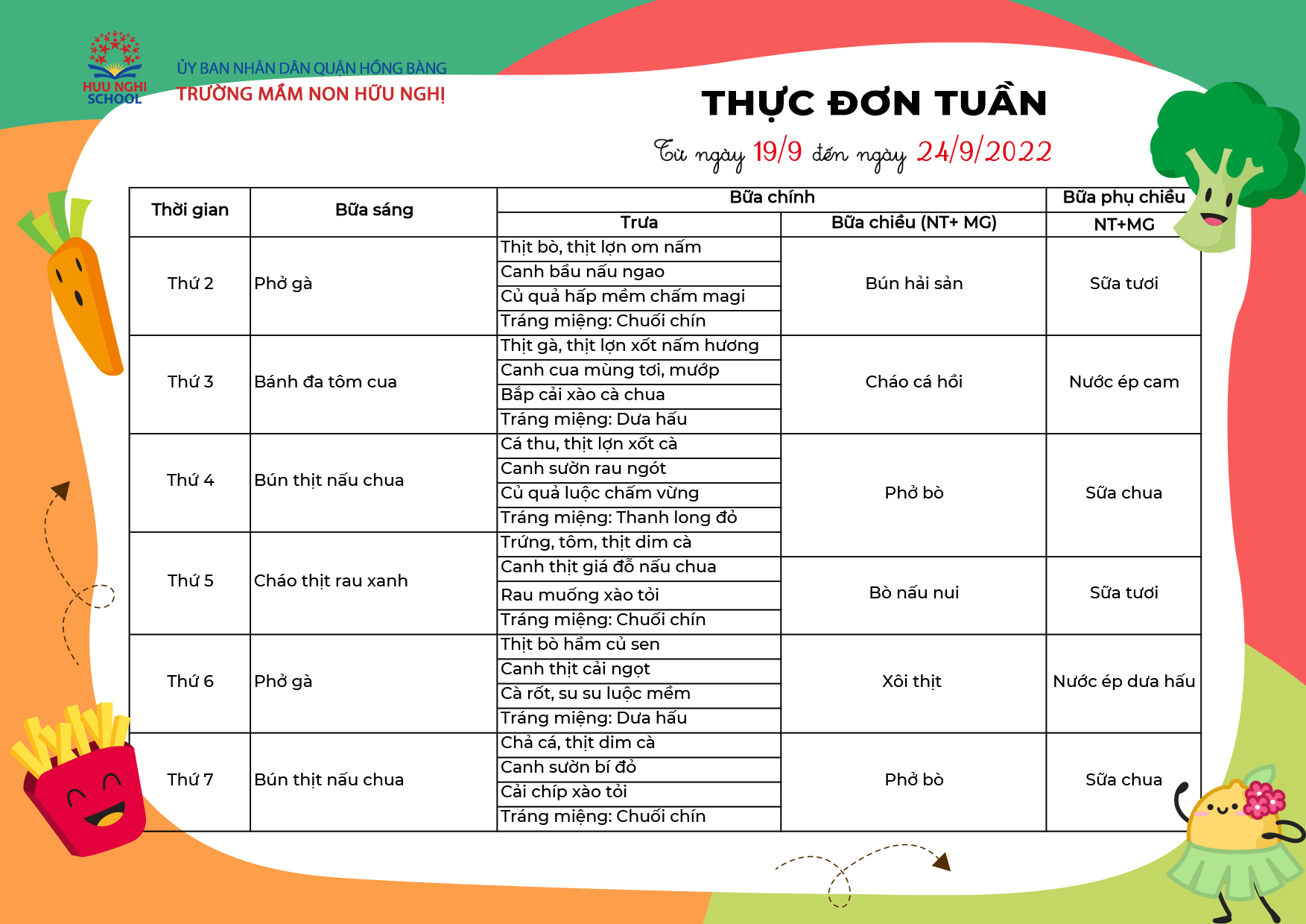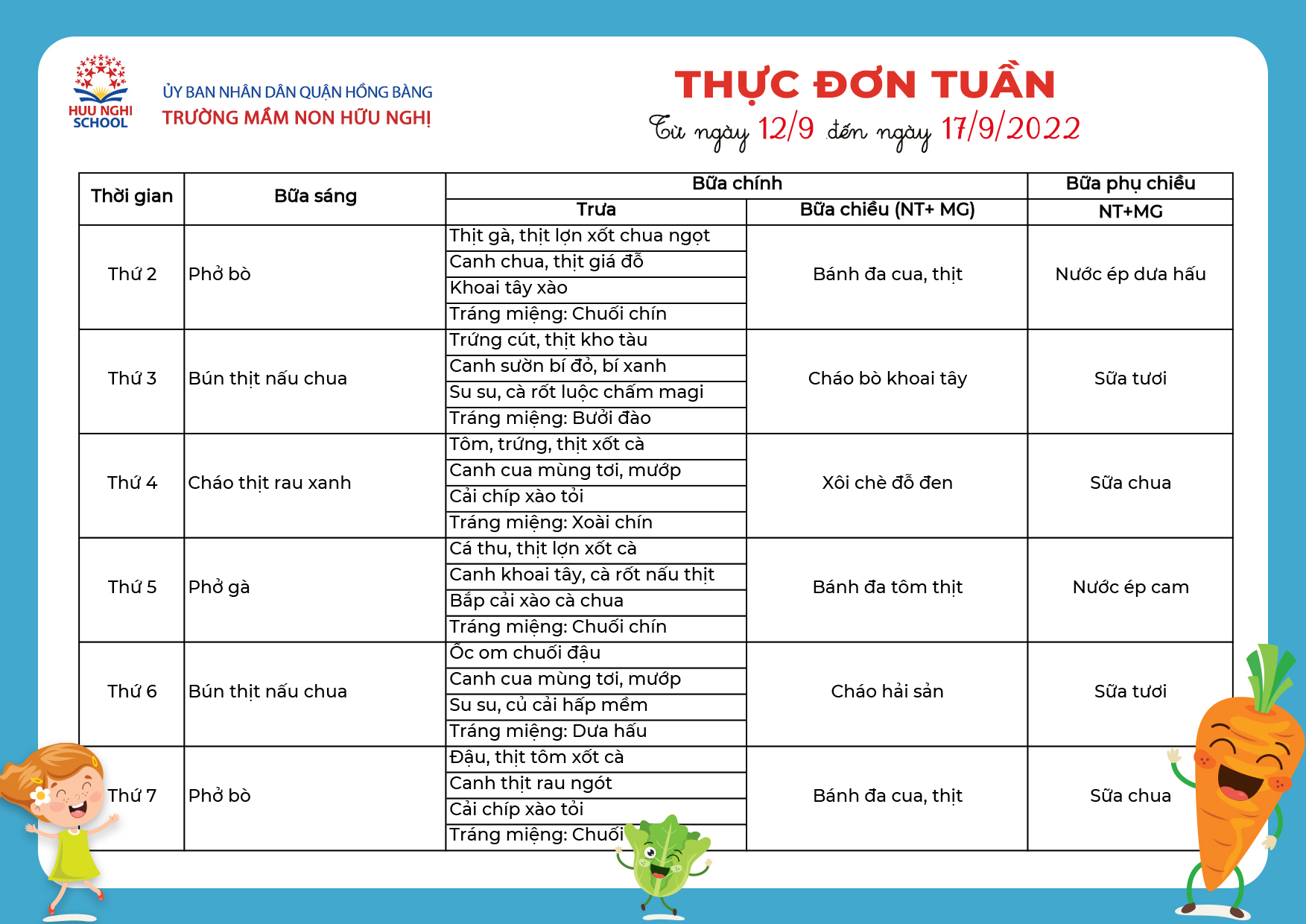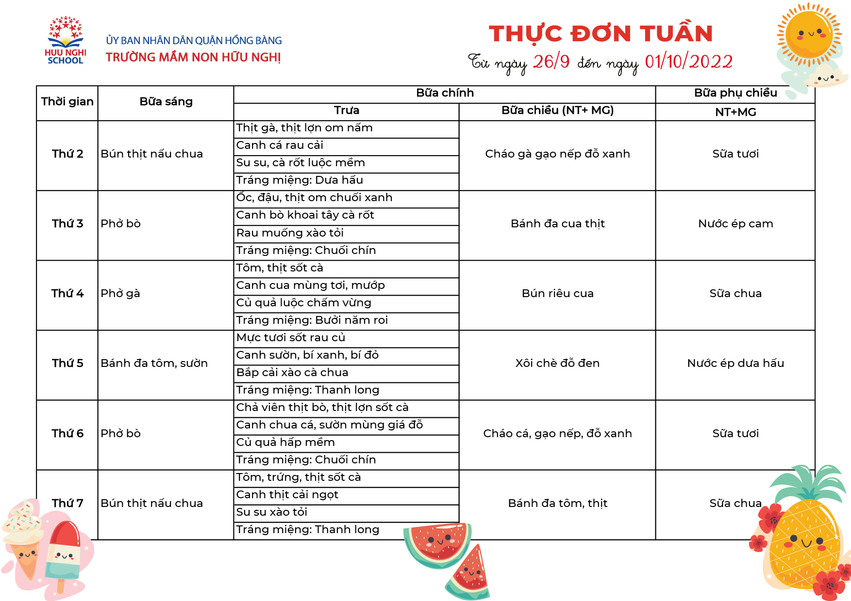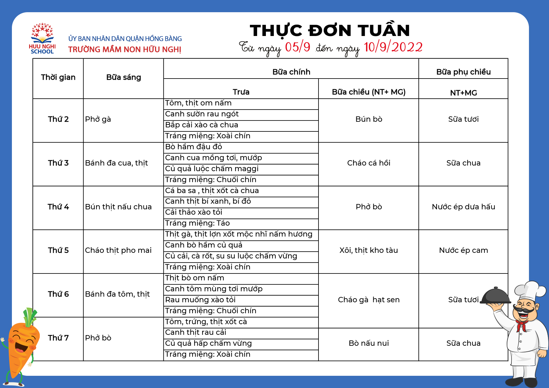 Thực đơn tháng 9 năm 2022